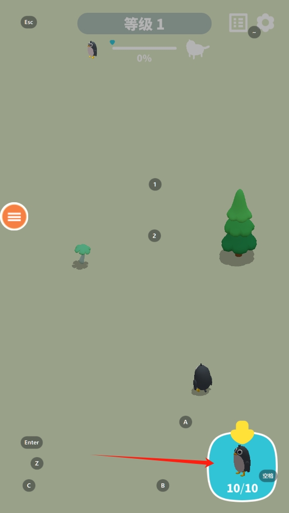 1、在游戏操作界面,选择企鹅角色显示10/10,利用键盘按键Enter、Z、C等和虚拟摇杆,控制角色在场景中移动,开始游戏探索。