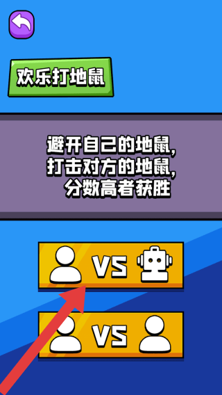2、点击欢乐打地鼠会呈现游戏玩法,例如需要避开自己的地鼠,打击对方的地鼠,分数最高者获得胜利。