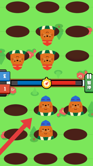 3、显示本关游戏已开始,我方处于红方,所以需要避开红色的地鼠,去敲打蓝色的地鼠。