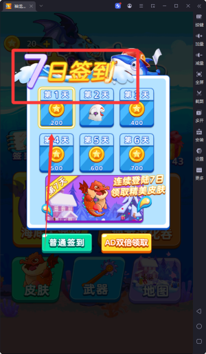 1、每日上线第一时间要查看您的签到奖励哦,得到大量资源,方便后续游戏体验哦。