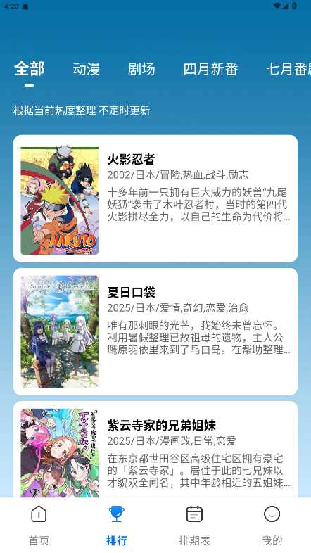 双子星动漫是一款专为动画爱好者打造的追番应用,提供海量正版热门动漫资源,涵盖国漫、日漫、欧美动画等多种类型,更新及时,连载番剧同步推送。支持高清画质播放、离线缓存、一键追剧、弹幕互动与智能推荐等功能。界面简洁操作便捷,无广告干扰,无需会员即可畅享观影体验,是动漫迷不可错过的掌上追番神器。