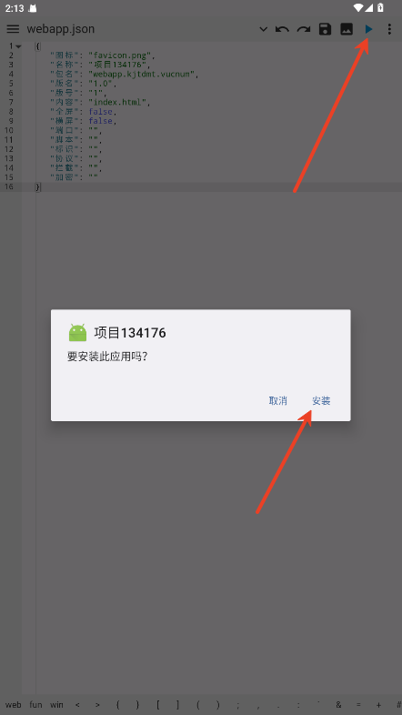 7.点击运行后即可打开生成app,然后调用手机中的安装程序进行安装
