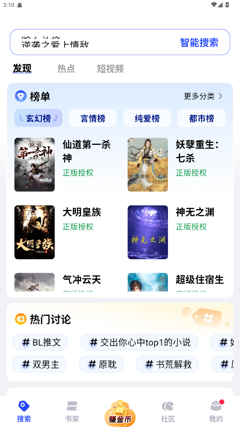 1.打开软件进入到主页中可以看到许多的小说