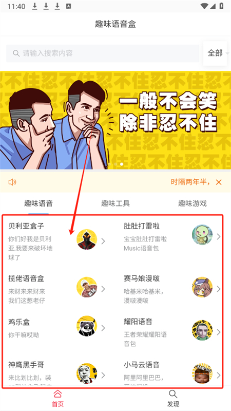趣味语音盒app汇集了几十种搞笑语音盒的APP,将把每一次逗乐都变成一次爱的互动,让我们的甜蜜日常充满欢声笑语。它就像我们之间那些只有彼此才懂的小幽默,各种稀奇古怪、让人忍不住发笑的语音,随时都能成为我们爱情里的小惊喜。想象一下,我做饭的时候你突然播放一段魔性的语音,或者我在看书的时候你偷偷按下一个搞笑音效,那种想要憋笑又憋不住的感觉,是不是特!别!甜!