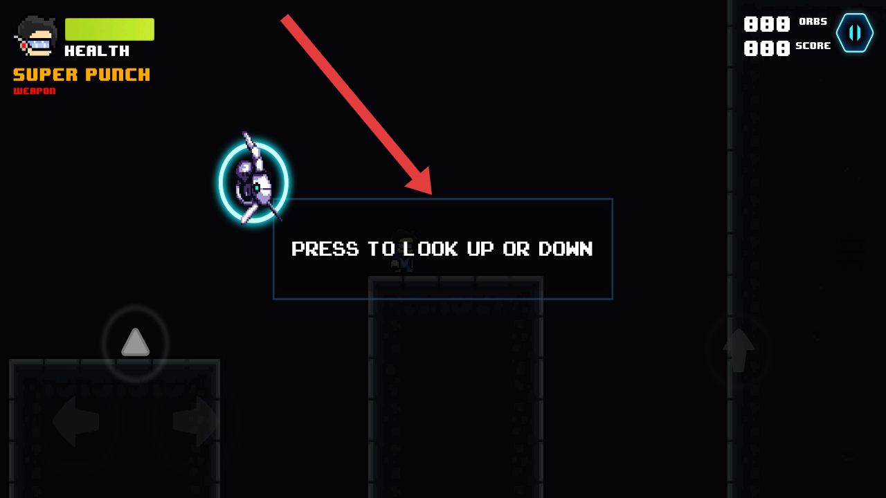 2、按照系统的提示PRESS TO LOOK UP OR DOWN,按压屏幕调整视角,查看场景上下的区域。