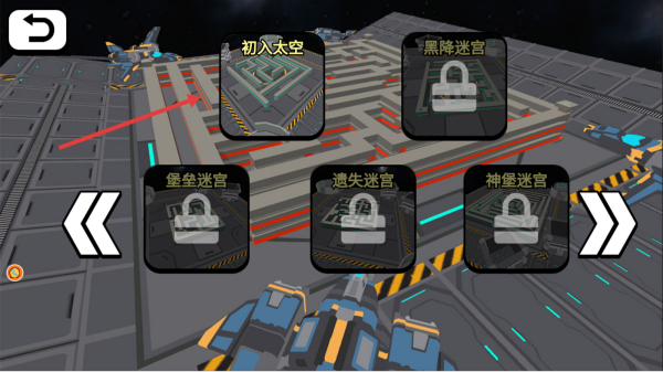 1、主界面点击开始游戏,进入关卡选择页,优先选解锁的初入太空迷宫,开启太空场景逃亡挑战 。