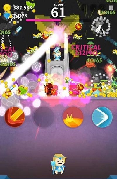点杀高手守卫者玩法简洁却藏着多样特色,奇幻对战模式搭配全新竞技场景,可挑选专属人物投身战斗,背景设定于城堡与恶龙的故事,邪恶怪兽正蜂拥而至,企图复活被塔楼封印的火龙,每一次点击都在守护世界,华丽技能特效加持下,在复古画面与奇幻旋律中,展开一场关乎封印与守护的持续对决,既有轻松操作的便捷,又有层层挑战的热血。
