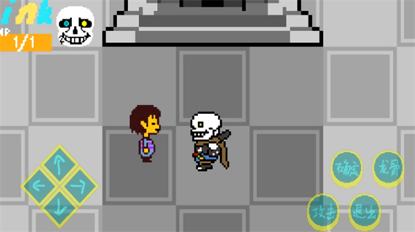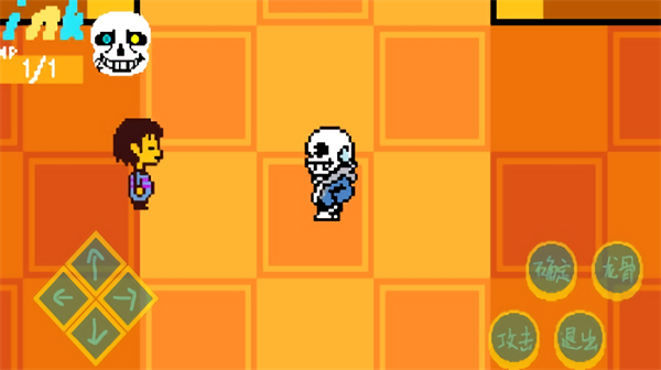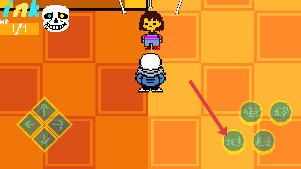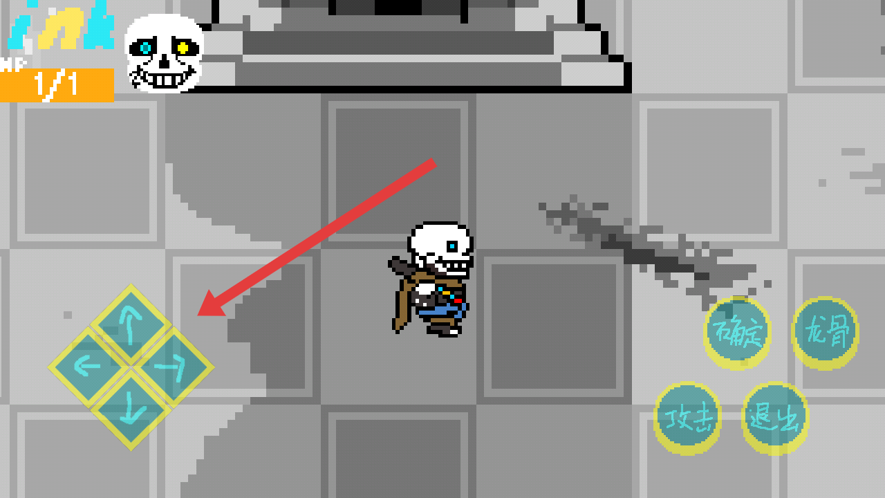 1、进入游戏和NPC对话完后,开始冒险通过左侧方向键上下左右,操控骷髅角色在场景中移动。