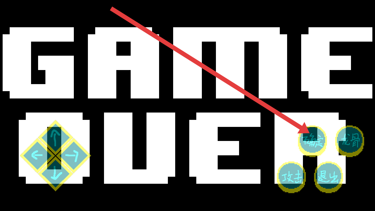 3、若被敌人攻击到则战斗失败,进入GAME OVER界面,可以点击确定的按钮,选择重新挑战。