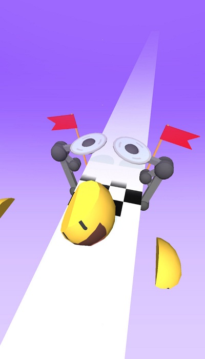 2、瞄准带白色虚线的【笑脸物体】发起切割,推进上方进度条,积累关卡完成度。