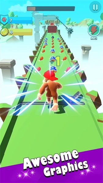 《巨金刚冲刺》中玩家们可以控制着大金刚去进行着不错的冒险冲刺的游戏,在游戏中有着非常多的关卡和模式等着玩家们去挑战,控制着自己的大金刚躲避着各种危险和陷阱,拾取着金币在商店里购买着各种类型的道具和准备,游戏的玩法非常的休闲,是一款非常不错的游戏。