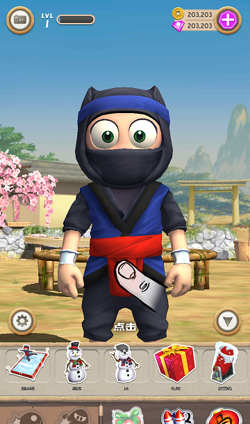 2、笨拙的忍者游戏提供了一个冒险的游戏,游戏中有丰富的日本风格,如场景:樱花鸟舍蹦床等等。