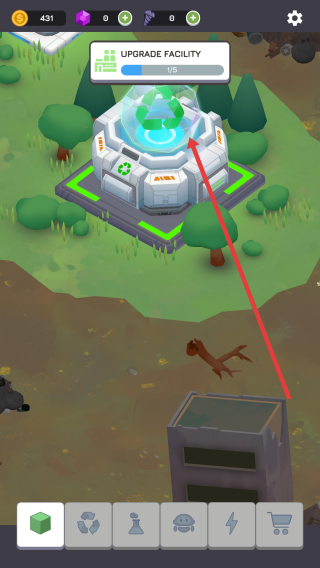 3、对房屋进行升级,攒金币后,点击建筑回收设施来升级,提升处理的效率、解锁新垃圾类型。
