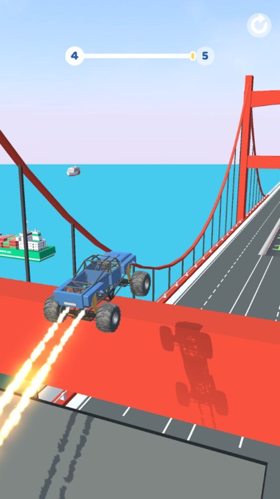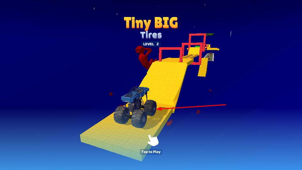 1、点击界面底部交互提示,操控蓝色越野车从黄色斜坡启动,就能够正式开启Level 2关卡挑战。