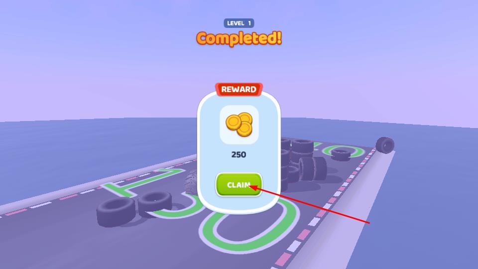 3、然后再通关后点击绿色CLAIM按钮,领取250金币奖励,需要去解锁后续关卡延续挑战。
