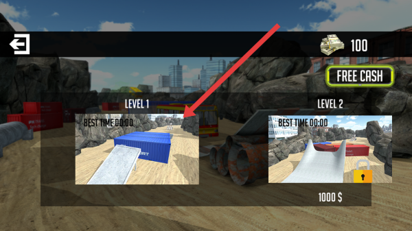 1、进入关卡的选择界面,需要点击LEVEL1开启首关挑战,尝试突破最佳时间记录。