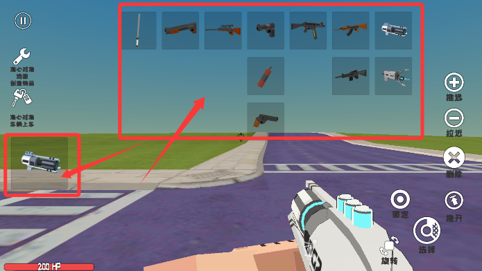 4、打开物品栏切换不同工具,装备武器应对夜间出现的怪物,保护创作成果。