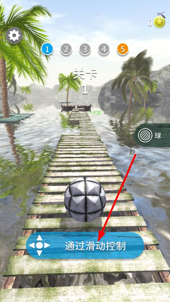 1、进入关卡,滑动屏幕控制球体移动方向与力度,在木桥起点调整姿态缓缓启动,适应桥面摇晃节奏,开启平衡挑战的第一步尝试。