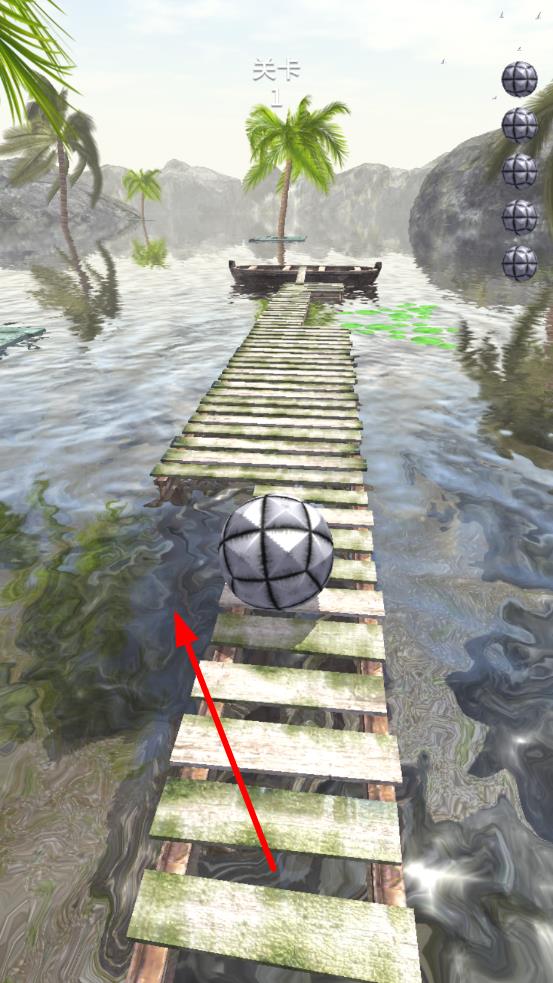 2、行进时留意破损木板、倾斜路段,通过反向操作抵消重心偏移,避免球体坠入水中,应对场景变化的考验。