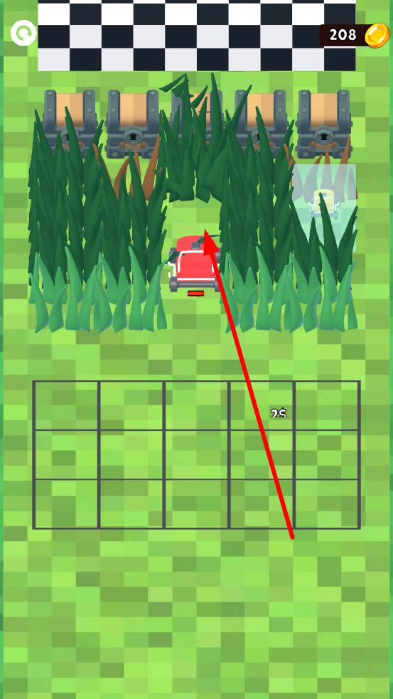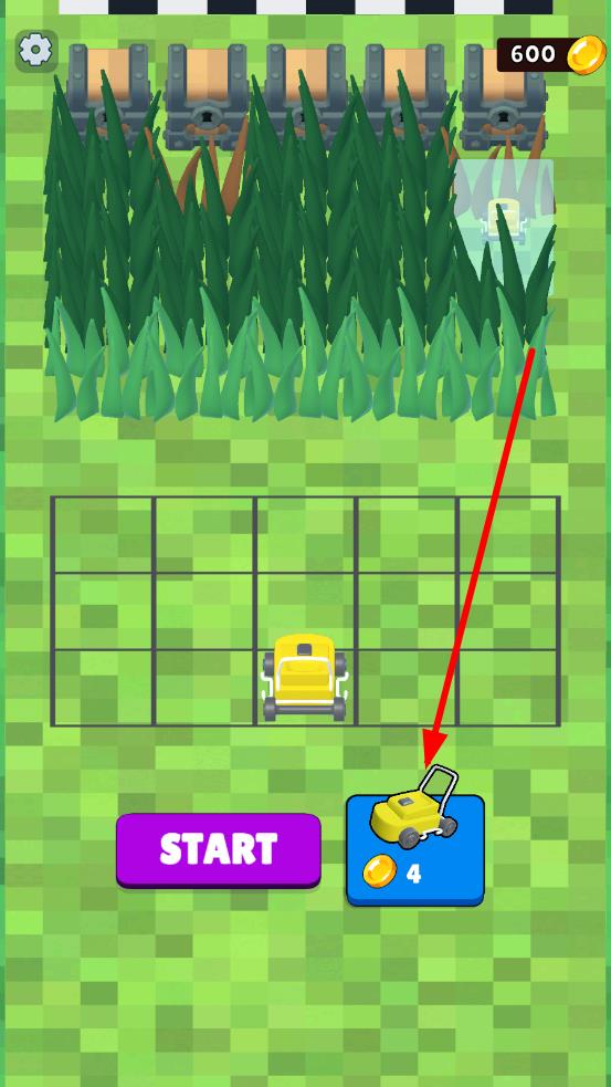 2、割草过程中,玩家可以观察宝箱的位置,规划割草机的始发位置,从而获得宝箱,拿到金币,用以获取割草机。