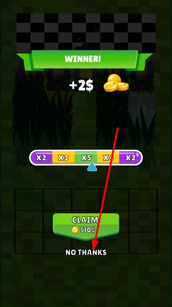 3、操控升级后的割草机,规划最优路线突破层层草丛封锁,朝着顶部方格旗区域推进,成功抵达后,解锁金币奖励与倍数加成转盘的选择机会。