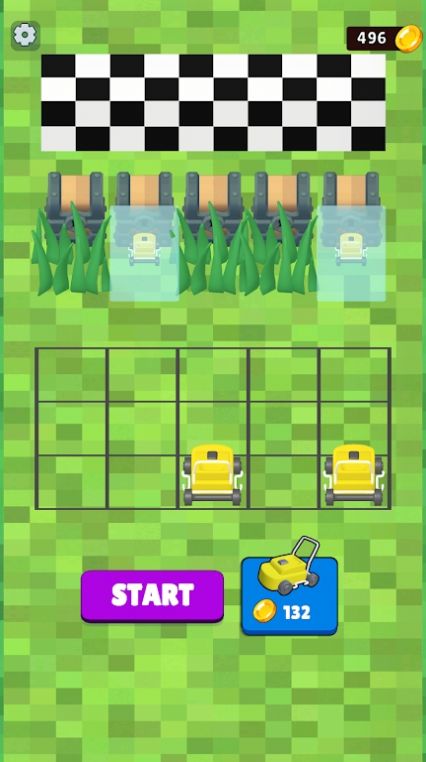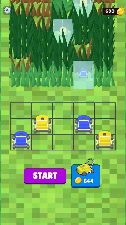 3、视觉反馈鲜明:割草机行进时,旋转刀片实时清除杂草,露出下方方格,金币闪烁掉落,杂草消失的动态变化直观,每一次切割都伴随成就感,视觉体验饱满。