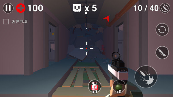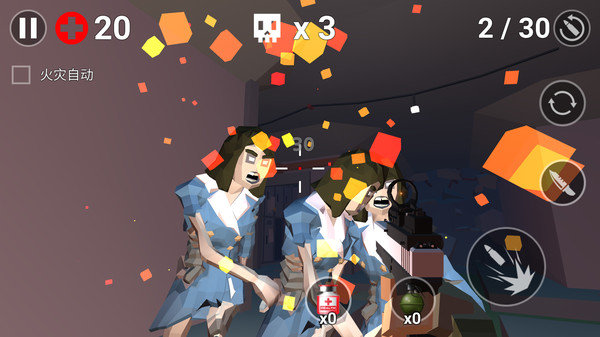 2、使用虚拟摇杆瞄准射击,爆头击杀僵尸可获得双倍金币奖励。