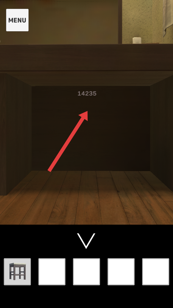 3、拿走柜子前的凳子并收入道具栏中,记住里面的数字14235,可能是作为关键密码,用于后续解锁。