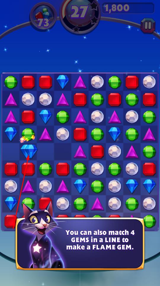 2、在宝石棋盘内,通过滑动操作交换相邻宝石的位置,使3个及以上同色宝石连成直线即可消除,借助特殊宝石触发连锁反应,快速积累分数,逐步逼近关卡目标。