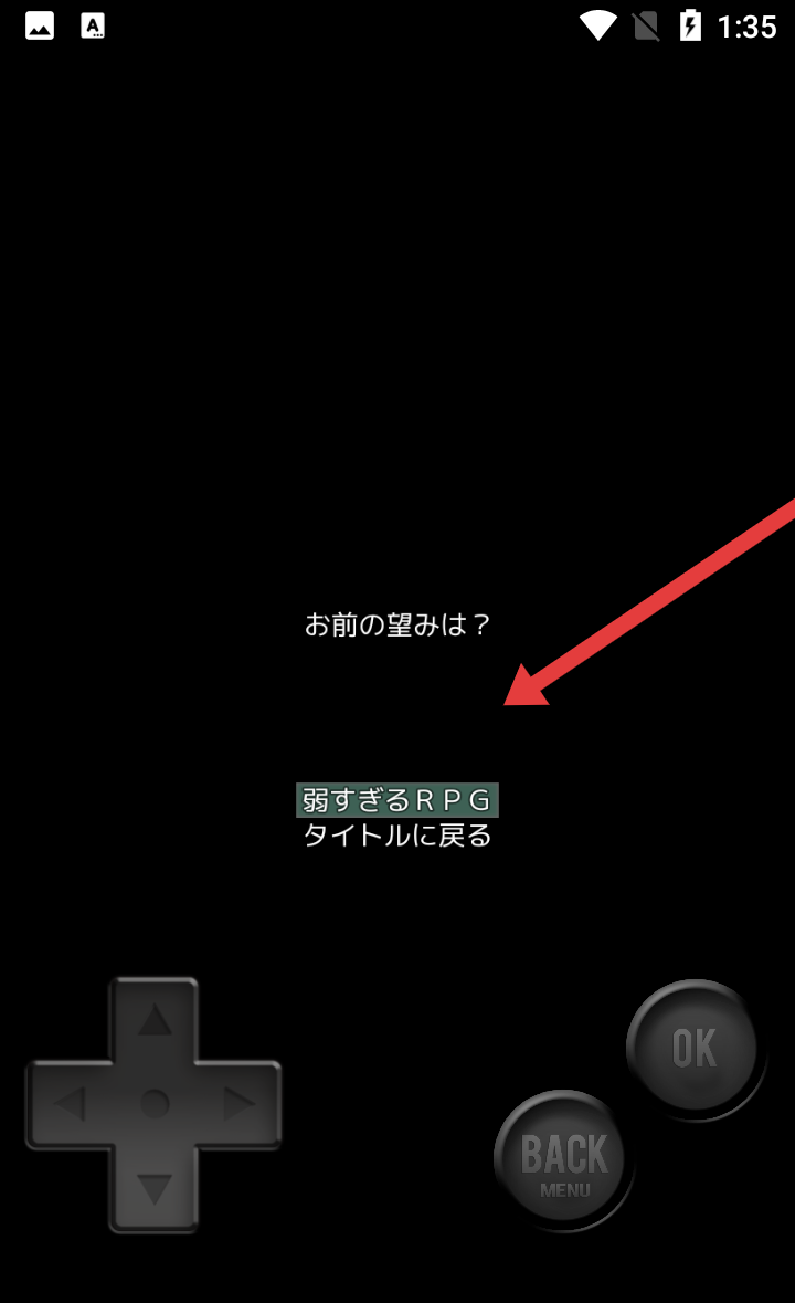 1、进入选择界面,屏幕中央显示お前の望望は提示,选择弱すぎるRPG选项,点击右侧OK按钮。