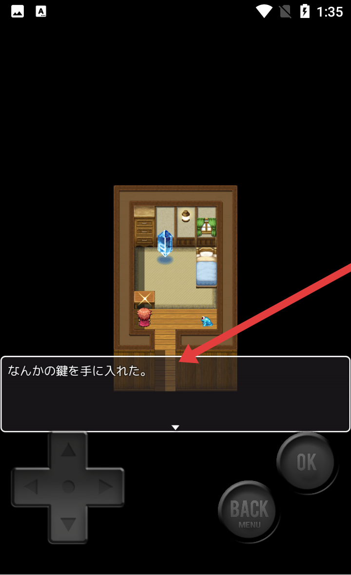 2、操控角色在房间内探索,与场景中的互动点触发事件,获得提示なんかの鍵を手に入れた,拾取关键道具钥匙。