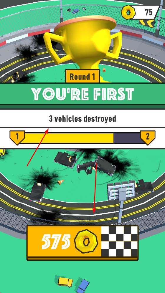 3、战斗结束后,根据摧毁车辆数量结算排名,获得金币奖励,用于后续车辆属性升级。