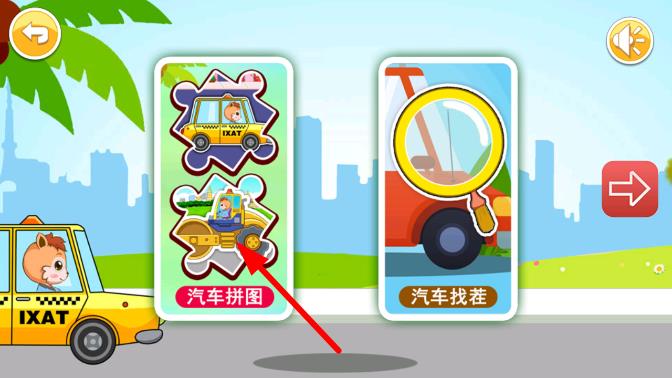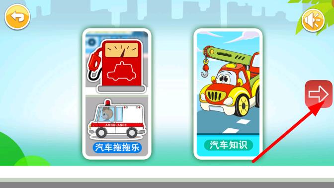 1、进入游戏后选择适合宝宝的难度模式,在看图识物板块中点击汽车图片,聆听对应的名称发音与功能介绍,初步认识不同车型。