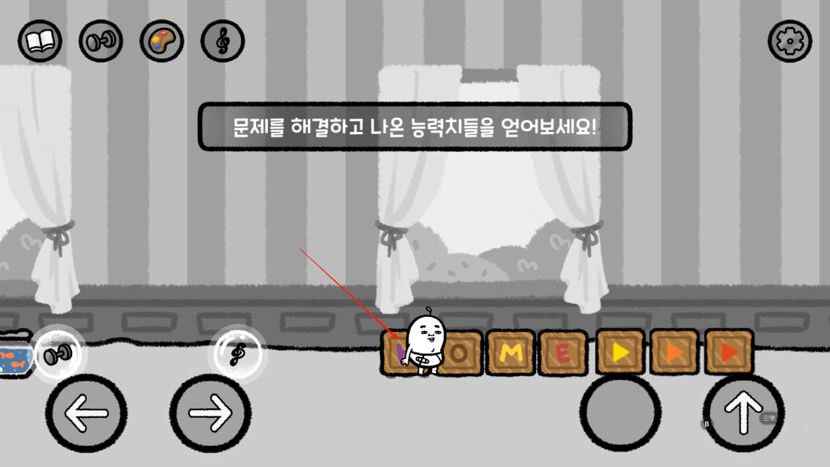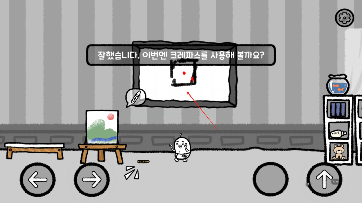 2、捡起地上的油画棒在画好的画板上乱花,则会掉落一个垫脚的方块,再捡起方块放到前方障碍,垫脚即可跳上去越过障碍。