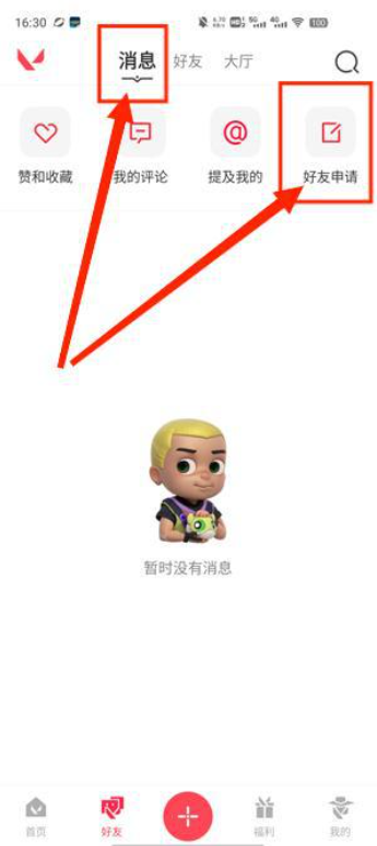 1.安装并打开掌上无畏契约,完成授权登录。点击左下角的好友选项。