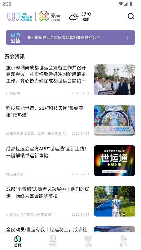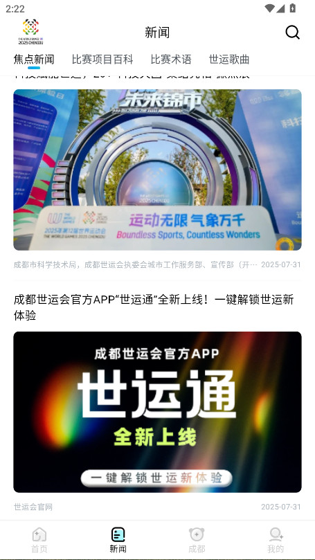 6.点击下方的新闻板块,就会看到世运会相关的资讯。