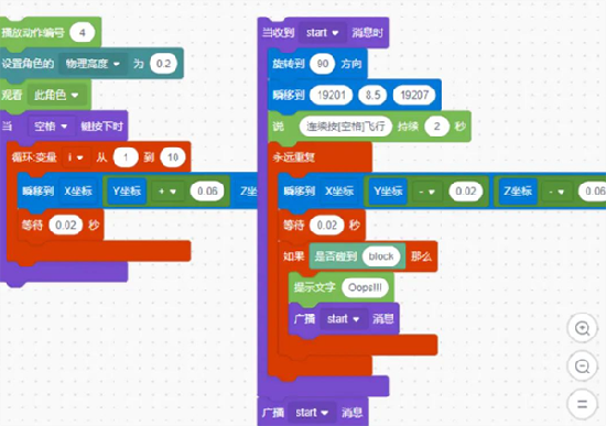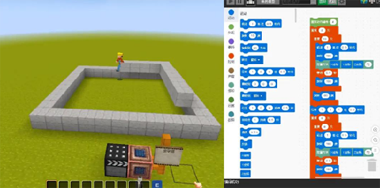 5、另一幅截图里则搭建出了两段代码,如同Paracraft世界里搭建了两个建筑一样。