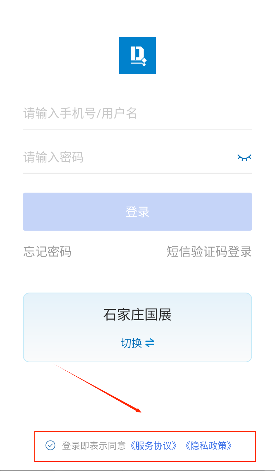 2、登录前需勾选底部协议,在"登录即表示同意"前打勾呀。遇到问题可点击"忘记密码"或"短信验证码登录"啦。