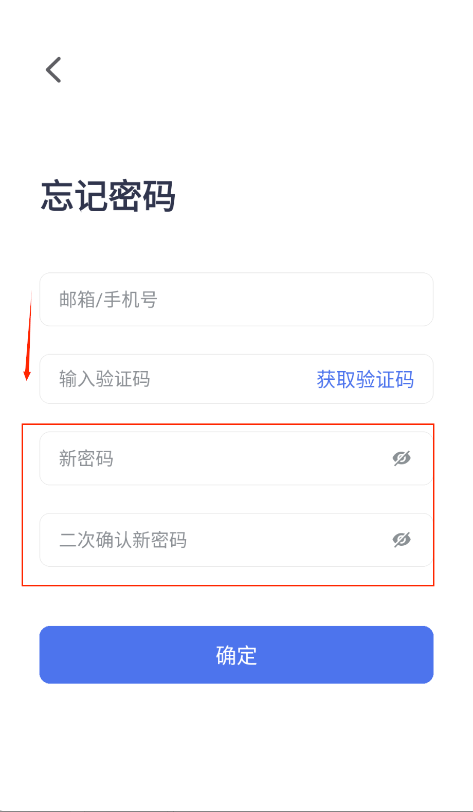 3、忘记密码页面简洁明了,输入注册邮箱/手机号获取验证码呀。新密码需输入两次确保一致哦。