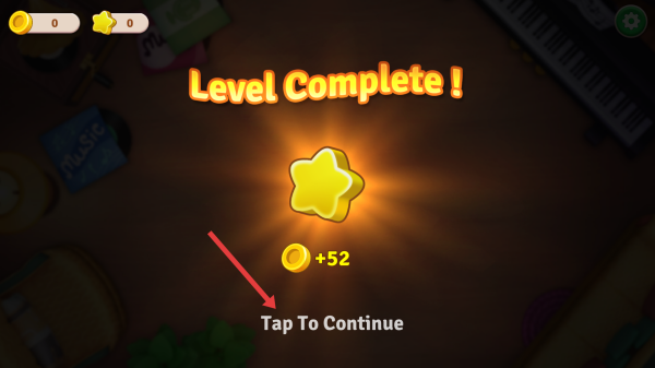 3、在完成当前关卡后,点击Tap To Continue,继续挑战下一关,逐步推进豪宅的翻新进度,解锁更多有趣的游戏内容和场景。