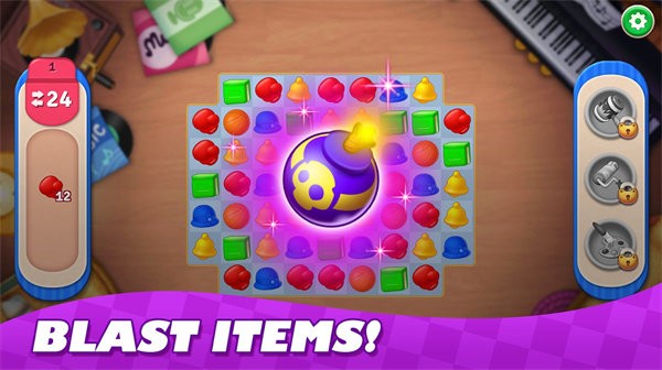 1、消除闯关获道具:通过参与三消关卡,完成消除任务获取各种家具和装饰道具,利用这些物品对豪宅进行翻新和装饰,解锁更多区域。
