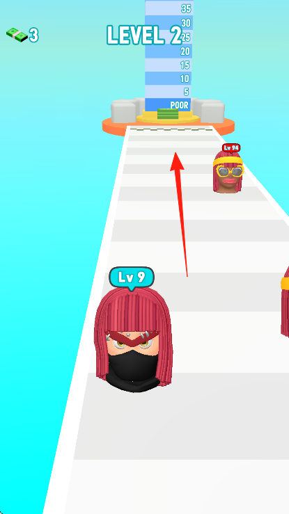 1、在Level1,操控角色头部,收集路上黄色圆环里的道具如眼镜,避开红色障碍,超越其他头戴角色。