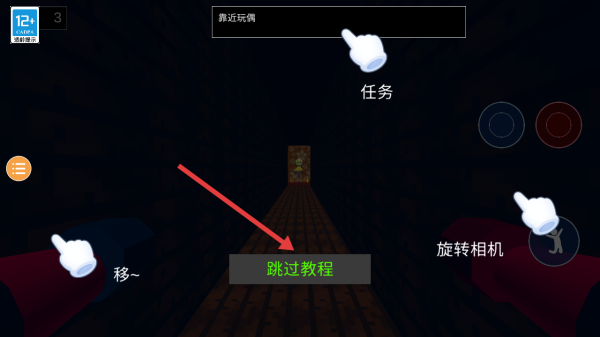 1、进入游戏界面,可选择跳过教程快速开始,或跟随指引熟悉操作,目标完成靠近玩偶任务。