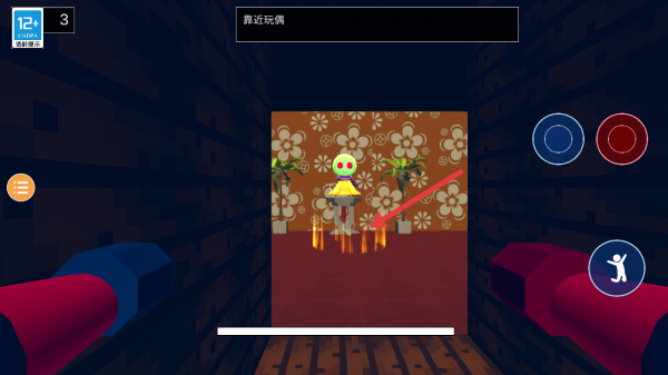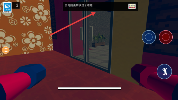 2、操控角色移动,沿通道前行,接近房间内玩偶,注意场景互动,触发新任务去电脑桌解决难题。