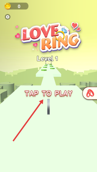 1、点击TAP TO PLAY,进入LOVE RING Level1,操控戒指沿赛道滚动,开启恋爱主题冒险。