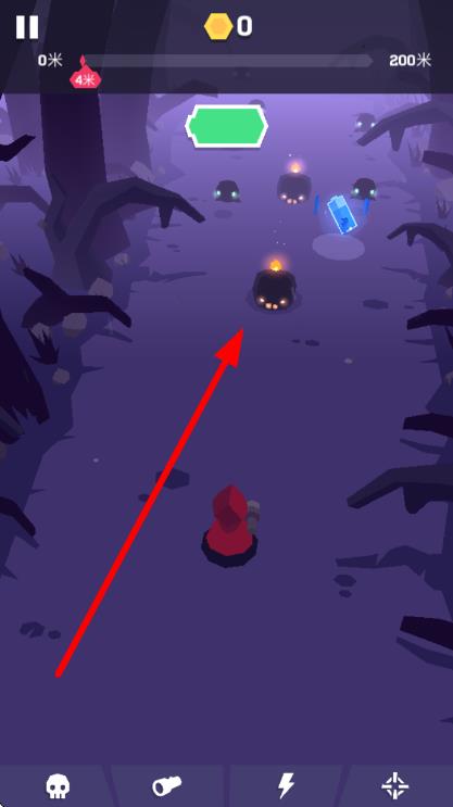 1、进入游戏,选择点击开始,开启降妖冒险,在暗紫色场景中,准备应对各类妖怪,推进200米目标路程。