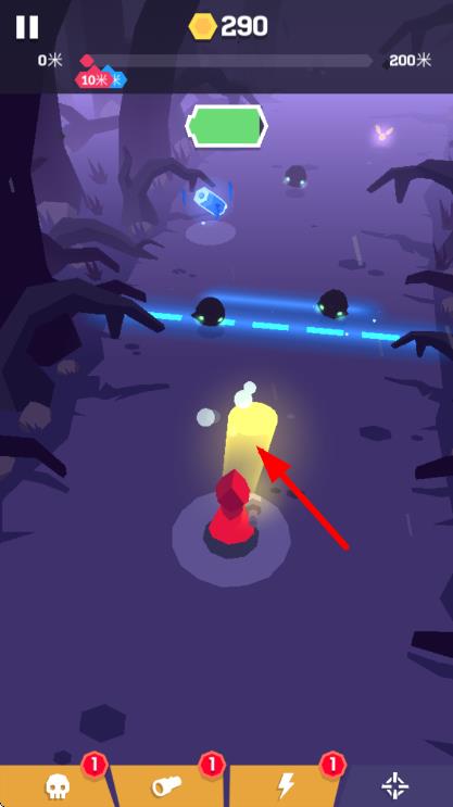 3、游玩中,遇到发光道具,靠近拾取,可获得增益效果,助力更快降妖,冲向终点。