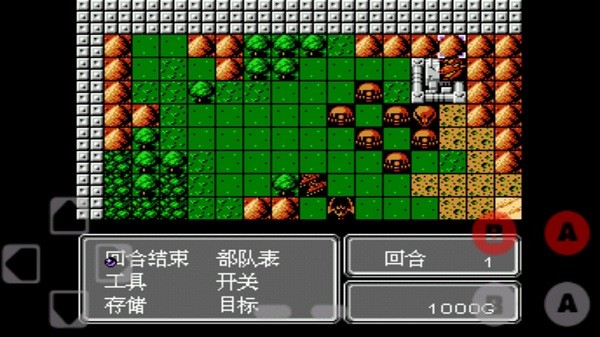2、在像素战斗地图中,通过虚拟方向键操控我方单位移动,规避山地、障碍,识别红色箭头标记的目标机体位置,应对沿途敌方单位拦截。