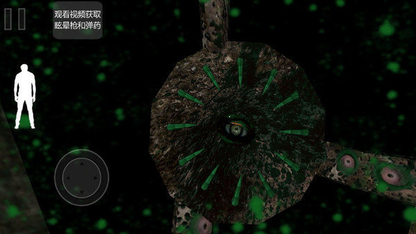 3、注意界面出现红色箭头,沿箭头指引,操控摇杆移动,探索场景收集物品,躲避敌人,朝目标方向推进。