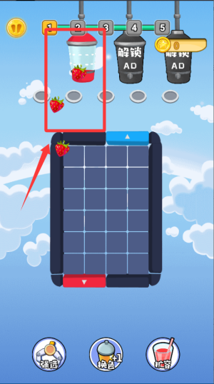 2、将相同种类的水果依次移向榨汁机,注意机器的容量限制,避免塞满后无法继续操作导致卡关。